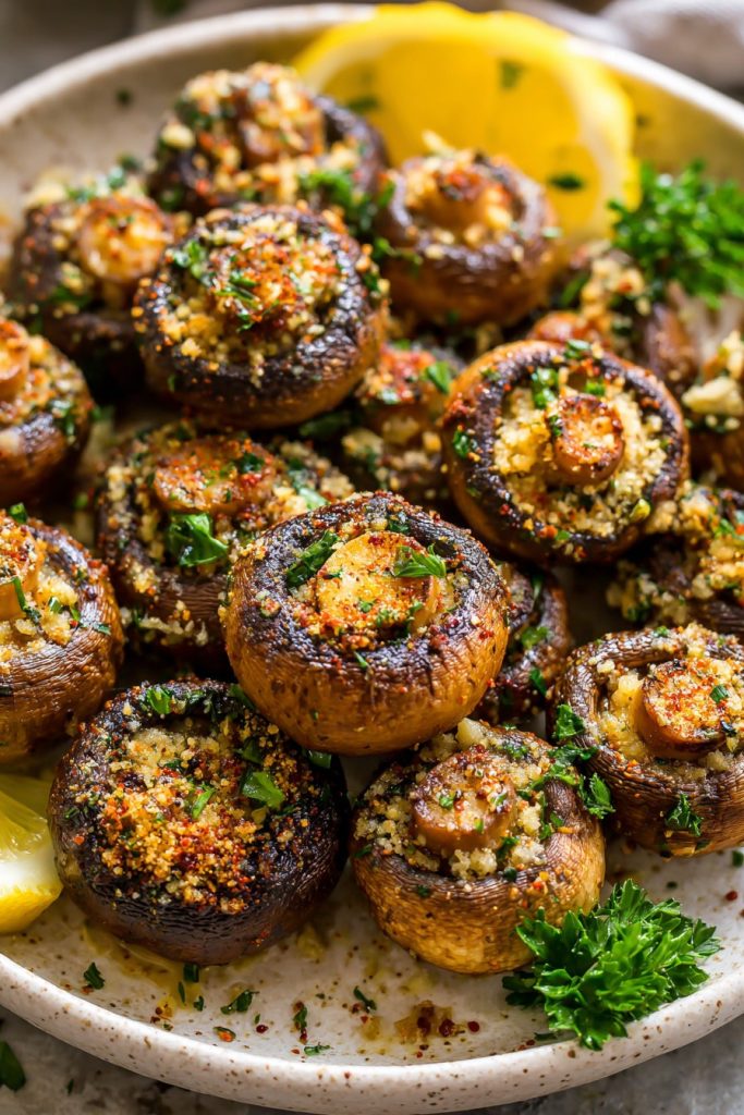 When your mushrooms have achieved a beautiful golden-brown color with slightly crisped edges, carefully remove them from the air fryer using kitchen tongs and transfer them to your serving dish. Immediately sprinkle the grated Parmesan cheese over the hot mushrooms, watching as it melts into a delicate, savory crust that clings to each mushroom like morning frost on autumn leaves. Drizzle with the fresh lemon juice, which will cut through the richness and brighten all the flavors, then garnish with chopped fresh parsley for a pop of color and freshness. The contrast between the warm, earthy mushrooms and the cool, bright garnishes creates a sensory experience that delights both palate and heart.
