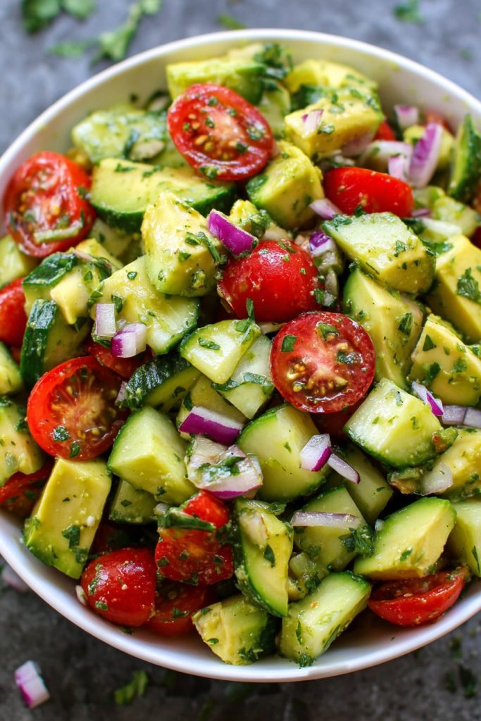 - The combination of textures from crisp cucumbers to creamy avocado and juicy tomatoes keeps things interesting for both adults and children, while the bright lime dressing cuts through the richness without overwhelming young palates with sharp flavors.
