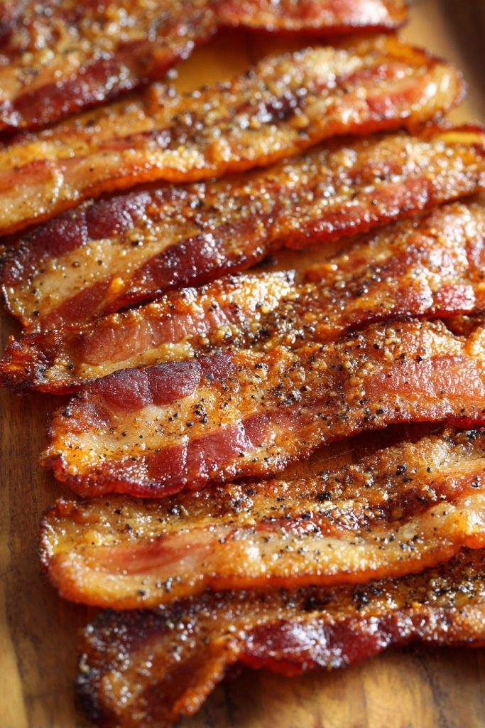 Now comes the moment of personal touch—grind fresh black pepper over the arranged bacon with a generous hand, watching the dark specks settle like stardust across the rosy landscape. If you’re feeling particularly romantic, sprinkle a delicate dusting of light brown sugar over select slices, creating a sweet counterpart to the bacon’s inherent saltiness that will caramelize into a glossy, crackling crust. The sugar will melt and bubble in the oven’s heat, forming a delicate lacquer that crackles between your teeth while the pepper adds a warm, aromatic complexity that lingers on the palate like a fond memory. This optional embellishment transforms simple bacon into an expression of care and attention, a small luxury that says ‘this morning, and you, are worth extra sweetness.’ The combination of savory, sweet, and spicy creates a symphony of flavors that dance together in perfect harmony.