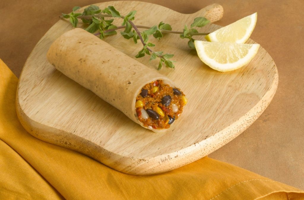 8. Fold the sides of the tortilla inward, then roll it tightly from the bottom to form a burrito.