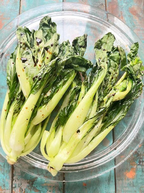 1. Rinse the baby bok choy under cold water and pat completely dry with a clean kitchen towel.