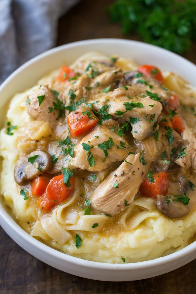 Chicken Noodles Over Mashed Potatoes Recipe – Comfort Food Mashup Magic