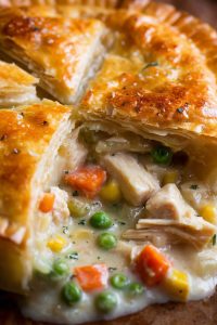 Certainly, and a large pot pie has its own charming, family-style appeal. Use a 9-inch deep-dish pie plate or a 2-quart baking dish instead of ramekins. You’ll need to increase the baking time to 35-45 minutes at 400°F, covering the edges of the pastry with foil if they brown too quickly. The larger pie will take longer to heat through to the center, so check that the filling is bubbling vigorously and the center of the pastry is golden brown. Serving a large pie creates a beautiful centerpiece for your table and that wonderful moment when you cut into it, revealing the steaming filling beneath the golden crust.