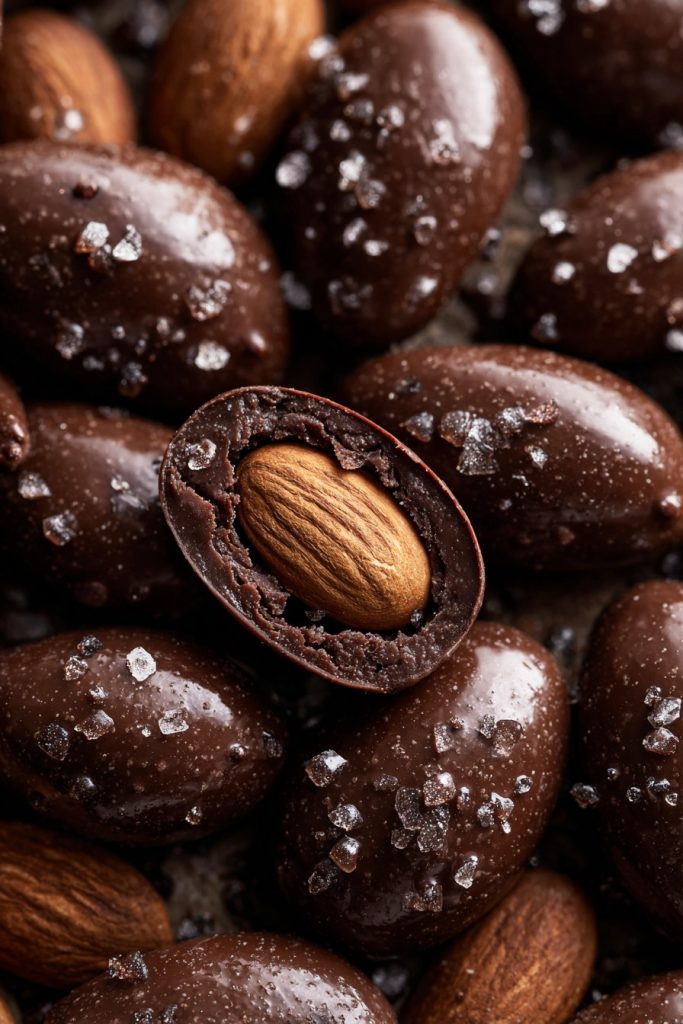 Immediately after placing each chocolate-coated almond on the baking sheet, lightly sprinkle with fine sea salt using your fingers or a small shaker. The salt not only enhances flavor by contrasting with the chocolate’s sweetness but also provides essential minerals like sodium, magnesium, and trace elements. Allow the almonds to sit at room temperature for 15-20 minutes to begin the initial setting process, during which the chocolate will start to lose its glossy appearance and develop a matte finish. This resting period is crucial for proper tempering and prevents the chocolate from developing bloom (those white streaks that indicate fat separation). The sea salt crystals will partially dissolve into the chocolate surface, creating a harmonious flavor integration that makes each bite perfectly balanced between sweet and savory notes.