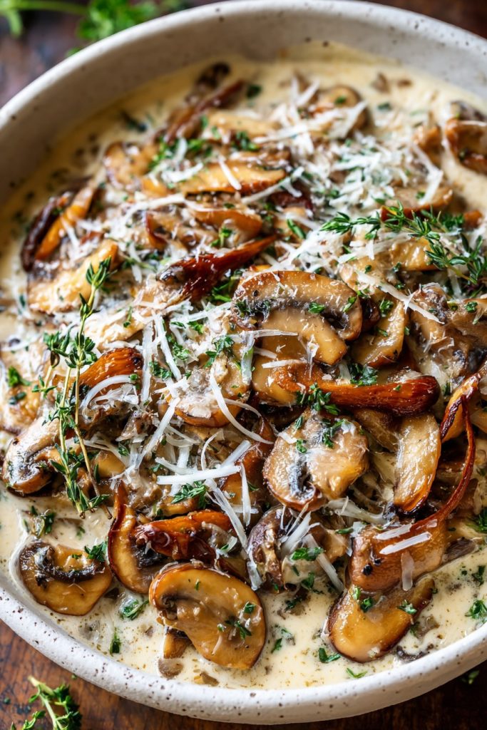 - The final addition of heavy cream and Parmesan creates a luxurious, velvety texture that coats each mushroom slice in pure indulgence