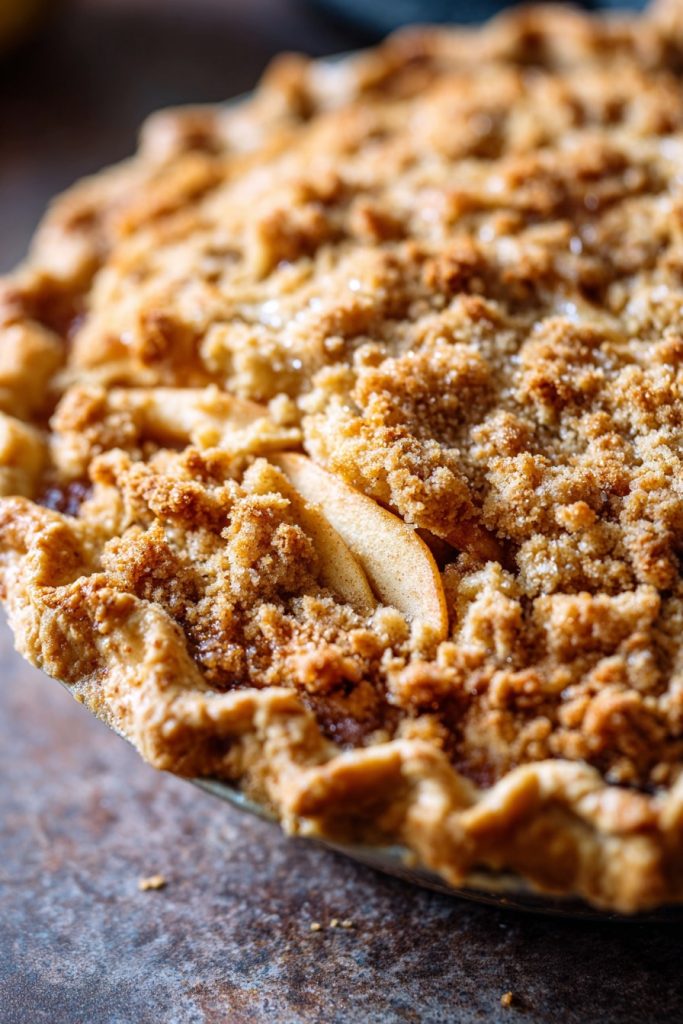 For the most spectacular presentation, consider brushing your pie crust edges with an egg wash (1 egg beaten with 1 tablespoon water) before adding the filling. This creates that beautiful golden shine that makes your pie look professionally baked. When arranging your apple filling, don’t just dump it in—take the time to create an attractive pattern by arranging the slices in concentric circles or slightly overlapping layers. This extra attention to detail makes each slice absolutely picture-perfect. If you notice your crumb topping browning too quickly during baking, simply tent the pie loosely with aluminum foil for the remaining baking time. And remember—the filling will continue to thicken as it cools, so resist the urge to judge doneness by how liquid the center appears while hot!