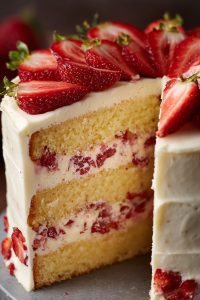 4. Fold in the diced strawberries carefully to avoid crushing them.