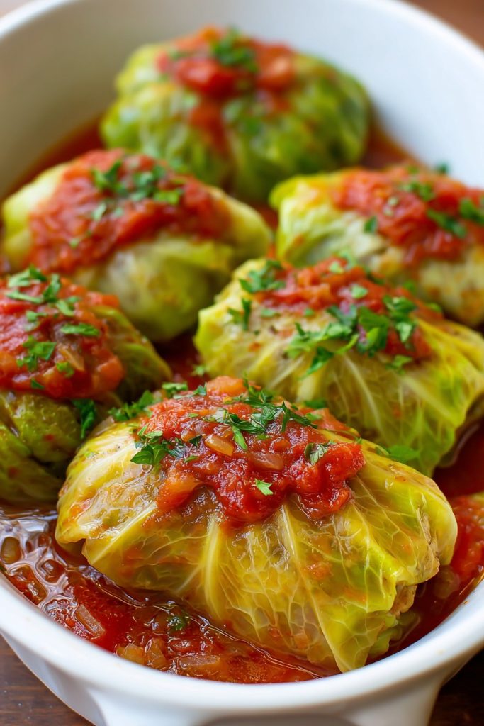 Slow cooker preparation is an excellent alternative that can enhance tenderness and convenience. Arrange the assembled cabbage rolls in your slow cooker, layering them if necessary. Prepare the sauce as directed but increase the vegetable broth to 1.5 cups to account for reduced evaporation. Cook on low for 6-7 hours or on high for 3-4 hours until the cabbage is tender and the filling reaches 165°F internally. The extended, gentle cooking time allows for deeper flavor development and can make the cabbage exceptionally tender. However, the texture will be softer than baked versions, and you won’t achieve the lightly browned tops unless you finish under a broiler for 2-3 minutes. This method is particularly beneficial for those seeking maximum convenience or dealing with limited oven space during holiday meals.