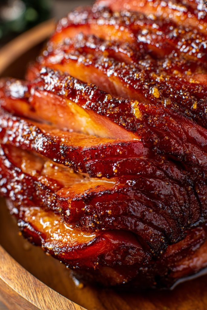 This is where the magic really happens—the grand caramelization finale! Once your ham reaches that perfect 140°F internal temperature, increase your oven temperature to 425°F and let that beautiful ham bake for one final 10-15 minutes, watching closely as the glaze bubbles, thickens, and transforms into that stunning, crackly, caramelized crust we’ve been working toward! You’ll know it’s ready when the entire surface is glossy, deeply browned, and you can see those sugar crystals sparkling in the light—the aroma filling your kitchen will be absolutely intoxicating with notes of caramel, spice, and savory ham goodness! Remove the ham from the oven and let it rest for 15-20 minutes before slicing—this resting period is absolutely essential because it allows the juices to redistribute throughout the meat and gives the glaze time to set up properly so it doesn’t just slide off when you cut into it!