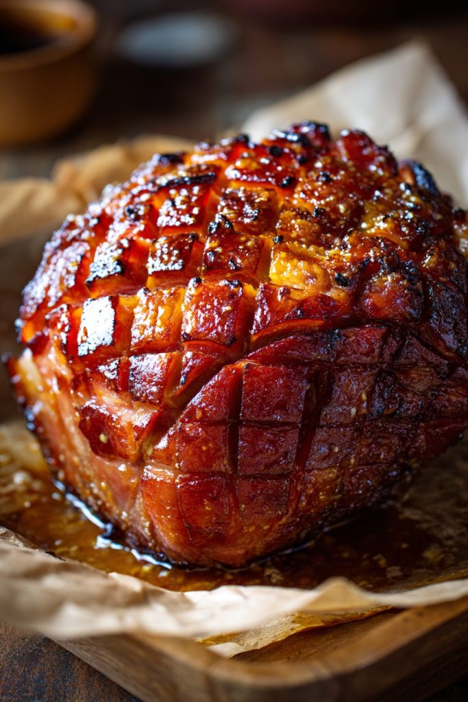 For those seeking to elevate this already magnificent dish to even greater heights, consider these intimate secrets that transform good cooking into memorable artistry. When selecting your ham, look for one with a good fat cap—about 1/4 to 1/2-inch thick—as this layer will baste the meat from the outside while providing the perfect canvas for your glaze to adhere to and caramelize upon. If you find your glaze is thickening too much as it cools between applications, simply place the saucepan over low heat for a minute or two while whisking constantly to restore its brushable consistency. For an extra dimension of flavor, consider adding a tablespoon of bourbon or dark rum to your glaze—the alcohol will cook off while leaving behind complex notes that complement the honey’s sweetness beautifully. When testing for doneness, always insert your meat thermometer into the thickest part of the ham while avoiding the bone, as touching bone can give you a false reading that might lead to overcooking. If you notice certain areas of your ham browning too quickly during the final glazing stages, create small foil shields to cover just those spots while allowing the rest to continue caramelizing. For the most beautiful presentation, consider garnishing your serving platter with fresh rosemary sprigs and orange slices that have been lightly caramelized in the same oven—this not only adds visual appeal but continues the aromatic story you’ve been crafting. Leftover ham should be stored in an airtight container in the refrigerator for up to four days, and the bone can be frozen for later use in soups or beans, ensuring nothing goes to waste. When reheating slices, do so gently in a 300°F oven with a splash of water or broth in the pan to maintain moisture, rather than using the microwave which can make the meat tough and rubbery. For special occasions, you might consider studding the ham with whole cloves at the intersections of your scoring lines before roasting—this traditional touch adds visual interest and another layer of warm spice flavor that permeates the meat during cooking.