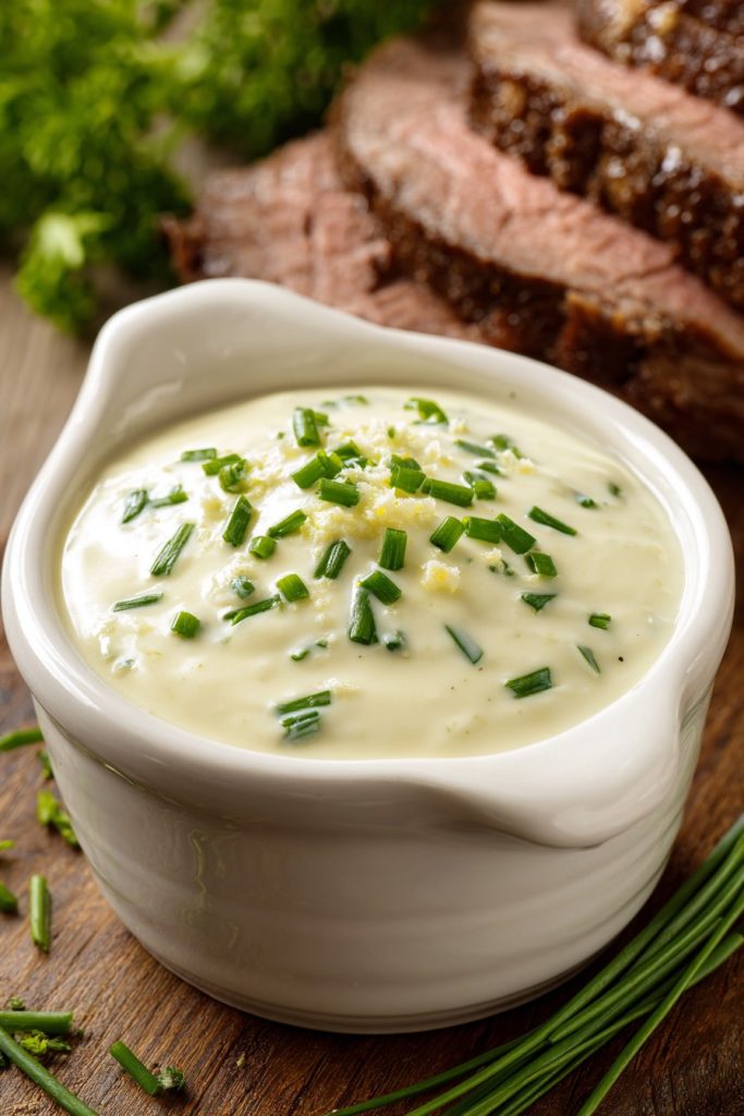 Yes, this sauce actually benefits from being made ahead. Prepare it up to 24 hours in advance and store covered in the refrigerator. The flavors meld and develop during this resting period. Stir well before serving, as some separation may occur. The horseradish flavor may intensify slightly overnight, which many people prefer. For best texture and flavor, do not make more than 24 hours ahead, as the fresh elements like chives can begin to wilt and the sauce may become too thin.