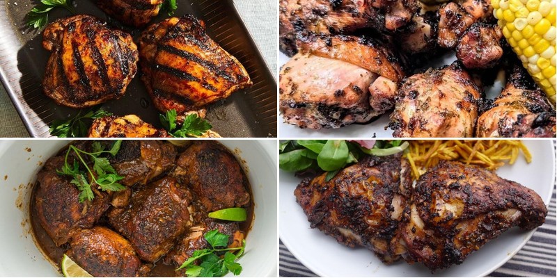 Jerk-Marinated Chicken Thighs with Grilled Corn