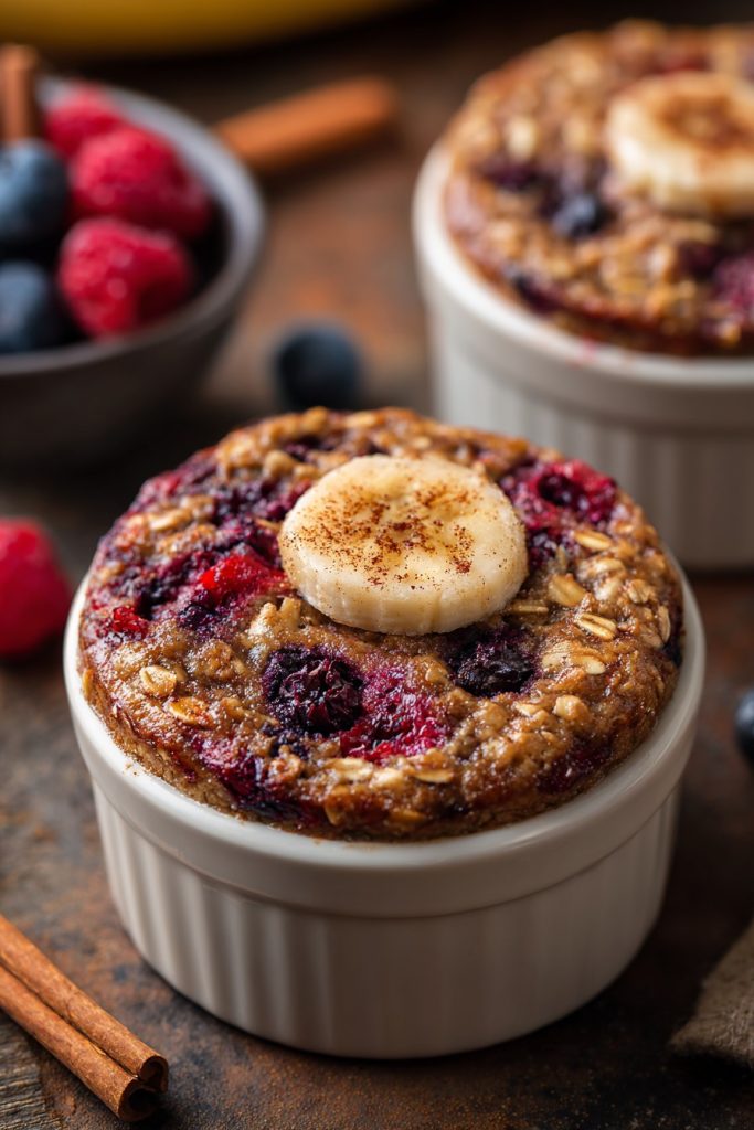 Carefully remove your baked oats from the oven using oven mitts – those ramekins will be HOT but smell absolutely incredible! Place them on a wire rack to cool for at least 10 minutes – I know it’s tempting to dive right in, but this cooling time allows the structure to set properly. The aroma filling your kitchen right now is pure breakfast heaven! Once they’ve cooled slightly, you can enjoy them directly from the ramekin or carefully run a knife around the edges and invert them onto plates for a beautiful presentation. Top with extra fresh berries, a drizzle of yogurt, or enjoy them just as they are – pure baked oat perfection!