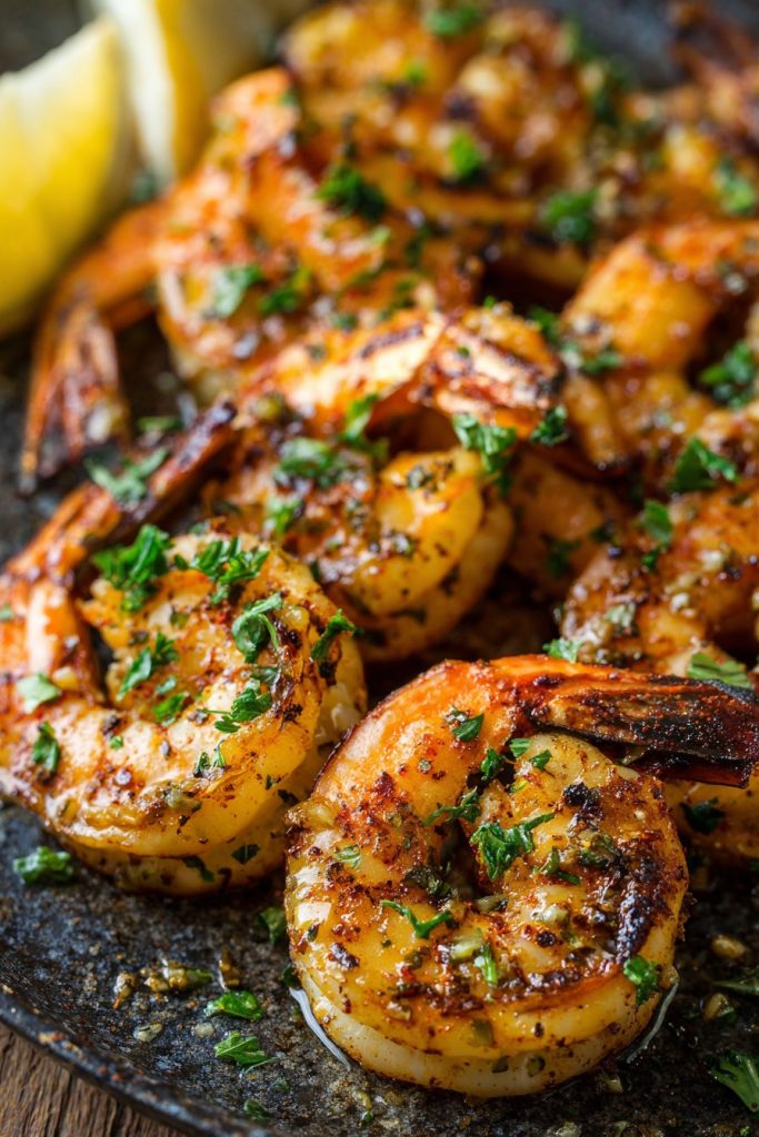 Transfer the grilled shrimp to a warm platter, arranging them with the care one reserves for precious things, and immediately sprinkle with the two tablespoons of freshly chopped parsley that you’ve reserved for this moment. The vibrant green against the pink shrimp and dark grill marks creates a visual poetry that precedes the culinary experience. Serve while still warm, perhaps with crusty bread to soak up any remaining marinade or over a bed of lemon-infused rice that continues the citrus theme. This is not merely food—it’s an offering, a shared experience that begins with the sizzle on the grill and continues through the last tender bite, the kind of meal that creates memories woven into the fabric of your relationship.