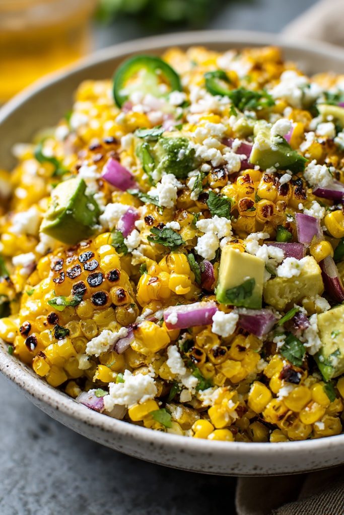 While traditionally served at room temperature, a warm preparation can be quite appealing, particularly during cooler months. To serve warm, complete all steps through the initial combining of dressed corn mixture, then gently reheat in a skillet over medium-low heat, stirring constantly until just warmed through—approximately 3-4 minutes. Remove from heat before incorporating the avocados and final garnishes. The gentle warming will slightly wilt the herbs and further melt the cheese, creating a more cohesive, comforting dish while maintaining the essential flavor balance. Avoid overheating, as this can cause the dressing to break and the corn to become mushy.