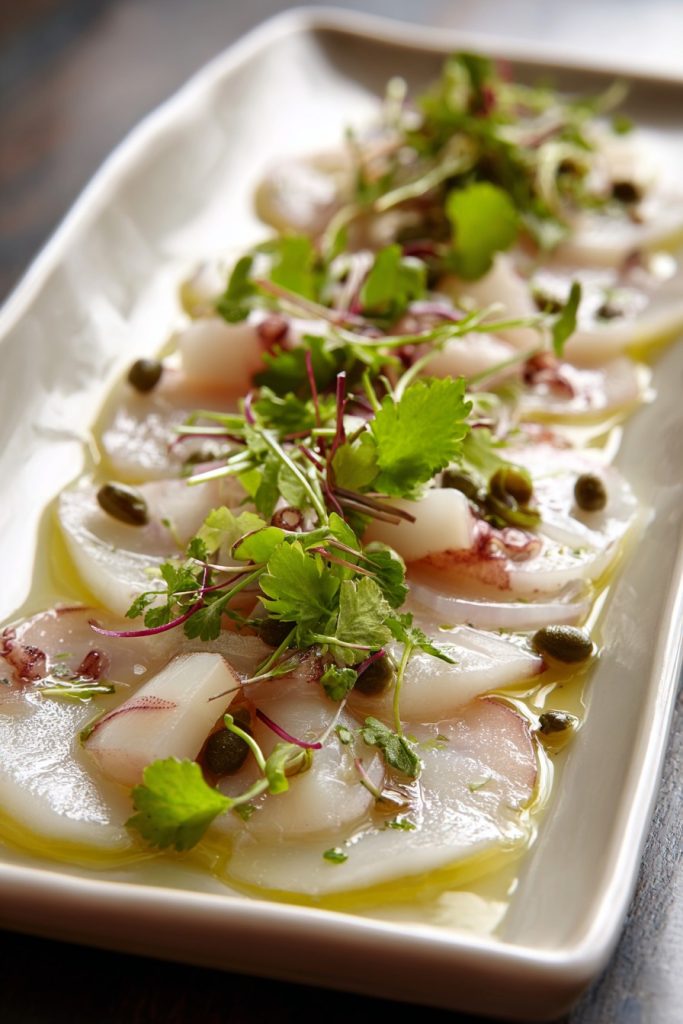 This octopus carpaccio masterfully combines lean protein with vibrant Mediterranean flavors, creating a dish that delights the senses while supporting wellness through high-quality nutrition and thoughtful preparation techniques that maximize both flavor and health benefits.