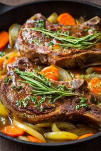 You can certainly do some advance preparation to make your evening more relaxed. The pork steaks can be seasoned and marinated up to twenty-four hours ahead, covered and refrigerated—just remember to bring them to room temperature for thirty minutes before cooking. The vegetables can be pre-cut and stored in an airtight container in the refrigerator. However, I don’t recommend fully cooking the dish ahead and reheating, as the texture of the pork will suffer. Instead, complete all prep work in advance so you simply need to sear and bake when your guests arrive, filling your home with that wonderful cooking aroma that builds anticipation.