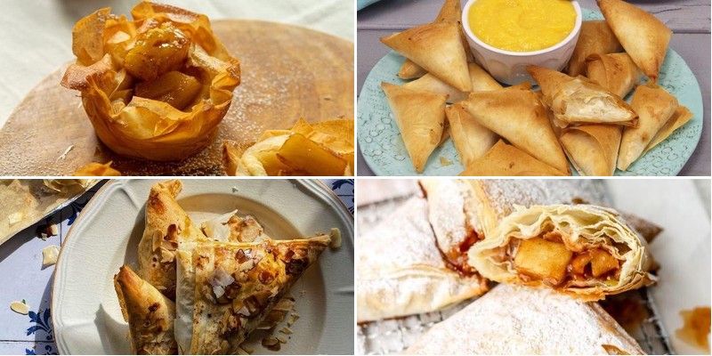 8. Repeat steps 3-7 with the remaining three filo sheets and apple filling to make four turnovers total.