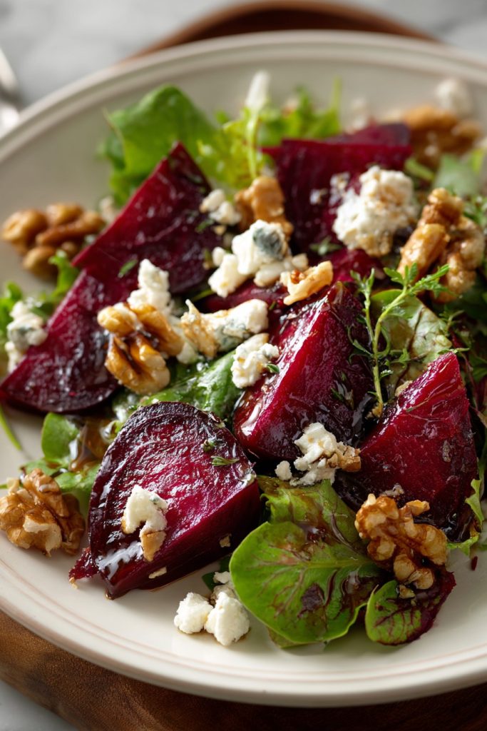 Absolutely! This salad adapts beautifully to a vegan diet with just a couple of simple substitutions. Instead of goat cheese, use crumbled firm tofu that’s been marinated in lemon juice and nutritional yeast, or try a commercial vegan feta alternative. For the maple-balsamic dressing, it’s already naturally vegan as long as you confirm your maple syrup and Dijon mustard don’t contain any animal-derived ingredients (most don’t). The toasted walnuts provide plenty of richness and protein, but you could also add roasted chickpeas for extra substance. The result will be just as satisfying and flavorful while aligning with vegan dietary preferences.