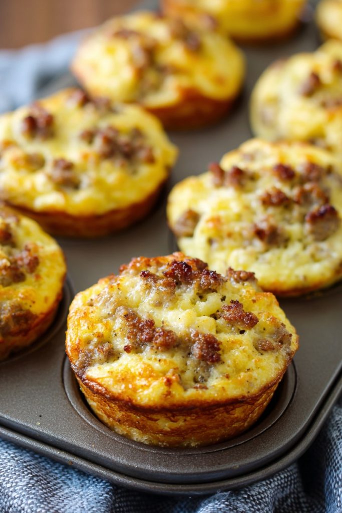 I prefer cooking the sausage in a skillet over medium heat, breaking it into small crumbles as it cooks. Cook until it’s no longer pink and has some golden brown spots, which usually takes 8-10 minutes. Drain the cooked sausage on paper towels to remove excess grease – this prevents your muffins from becoming greasy. If you’re really short on time, you can use pre-cooked sausage crumbles from the grocery store, though I find the flavor is better with freshly cooked sausage. Another time-saver: cook a large batch of sausage on the weekend and use it for various meals throughout the week.