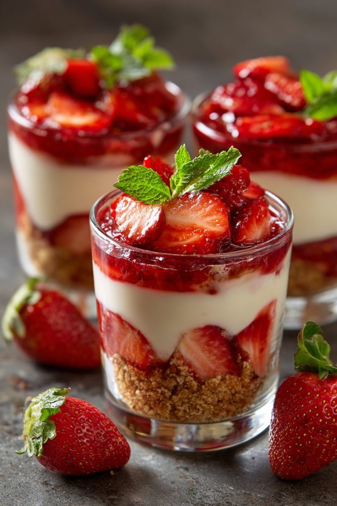 Absolutely, and this is one of the things that makes them perfect for busy family occasions, just like the make-ahead desserts my mother always relied on during holiday seasons. You can assemble the complete shooters up to 24 hours in advance and store them covered in the refrigerator until serving time. The crust may soften slightly with extended refrigeration, but this actually creates a lovely cohesive texture that many people prefer. If you want to maintain maximum crust crispness, you can prepare the components separately and assemble just a few hours before serving. The cheesecake filling can be made up to two days ahead, and the macerated strawberries will keep beautifully for about 24 hours in the refrigerator.