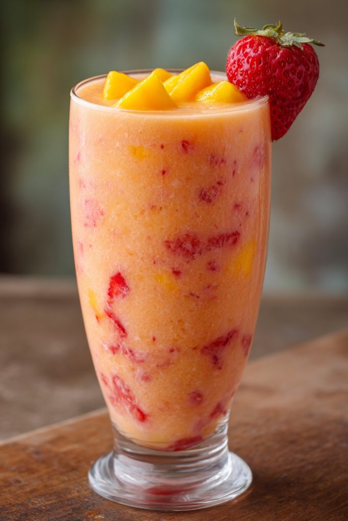 Absolutely, you can use fresh fruit if that’s what you have available, though the texture will be noticeably different. When using fresh strawberries and mango, I recommend adding about 1 cup of ice cubes to achieve that frosty, thick consistency we love in this recipe. The ice will dilute the flavor slightly, so you might want to increase the fruit quantities by about ¼ cup to compensate. Fresh fruit smoothies also tend to separate more quickly, so they’re best enjoyed immediately after blending rather than being stored for later. Many folks in my family actually prefer the brighter, more vibrant flavor of fresh fruit when it’s in season, making this a wonderful way to enjoy peak summer produce at its absolute finest.