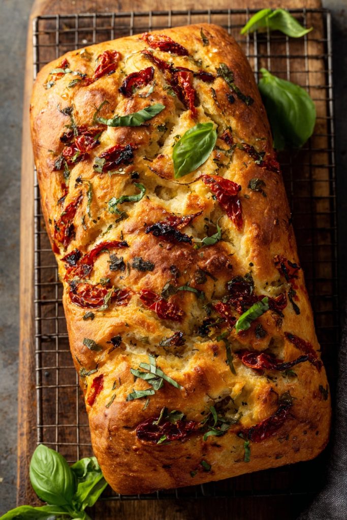 - For a cheesy twist that reminds me of my uncle’s famous grilled cheese sandwiches, fold in 1 cup of shredded sharp cheddar or provolone cheese during the final kneading stage, creating pockets of melted goodness throughout each slice – the cheese will brown beautifully against the red tomato specks, making every piece look as festive as our family holiday tables