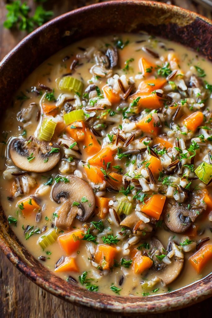 - Transform into a creamy mushroom and wild rice soup by doubling the mushroom quantity and incorporating 1 ounce dried porcini mushrooms. Rehydrate the porcinis in warm water, strain the liquid through cheesecloth, and use this flavorful liquid to replace part of the stock.
